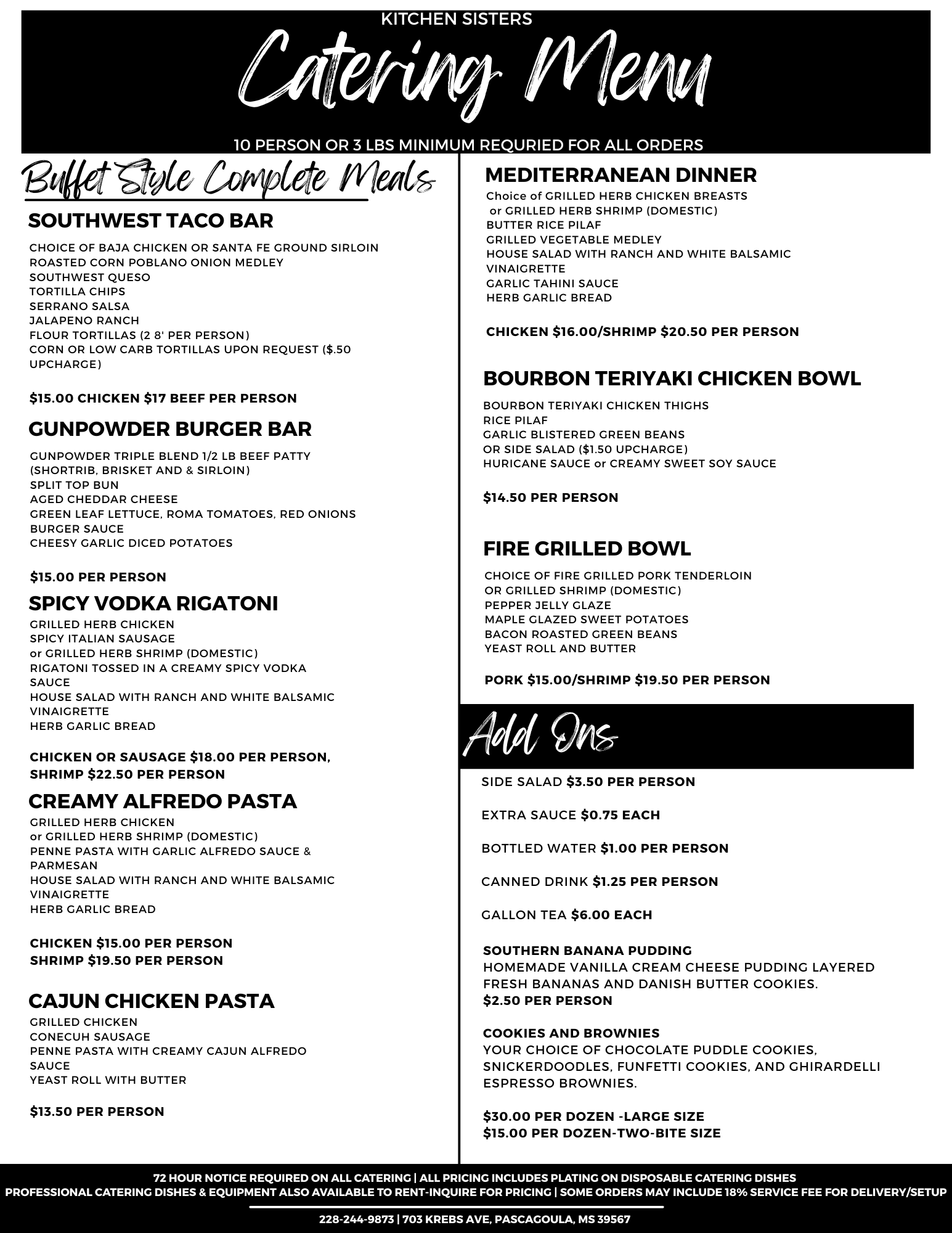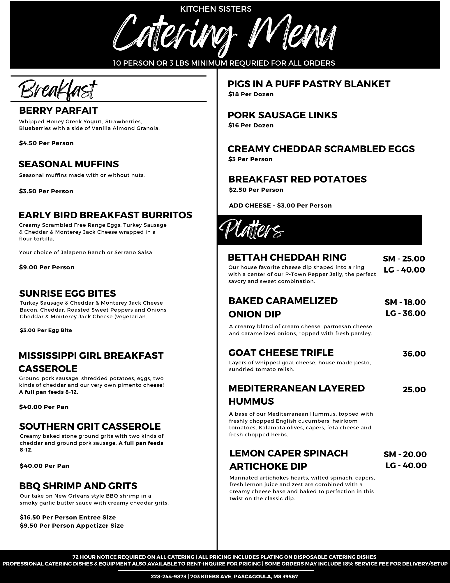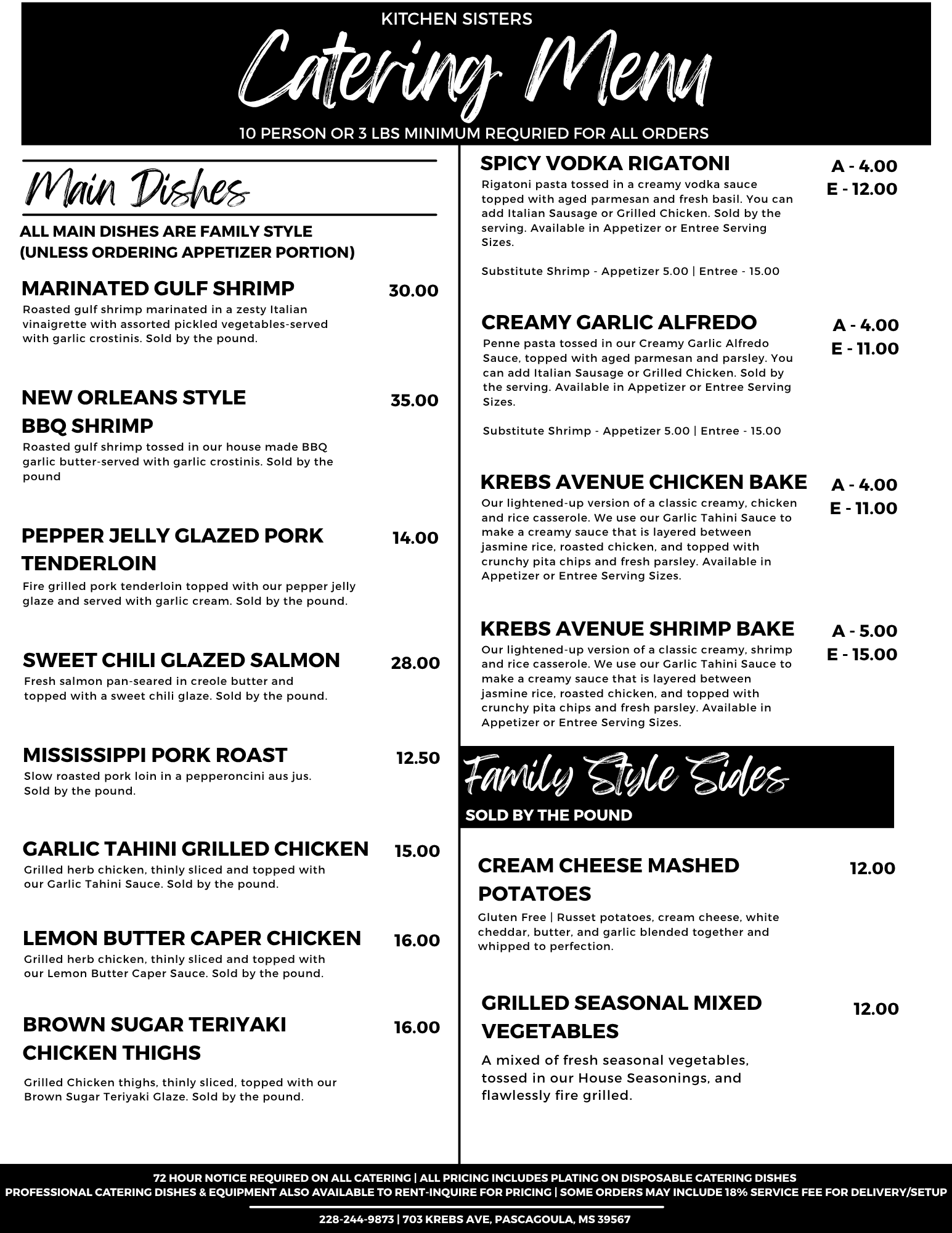There Is A 10 Person or 3 Lbs Minimum On All Catering Orders.