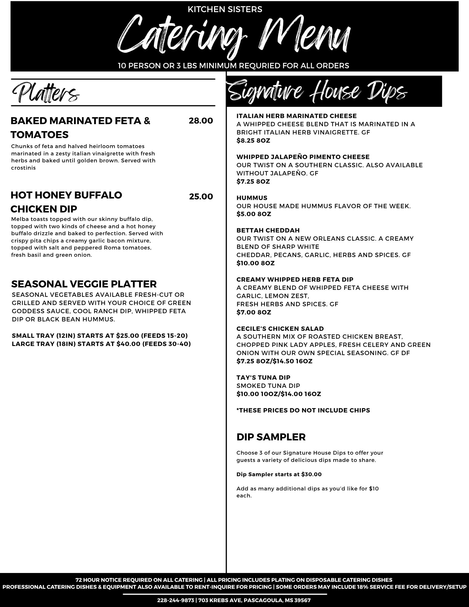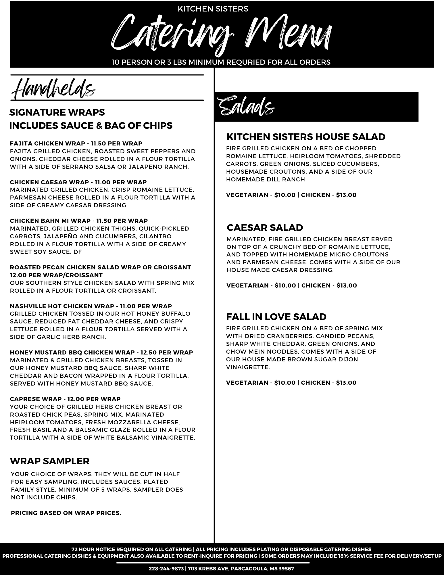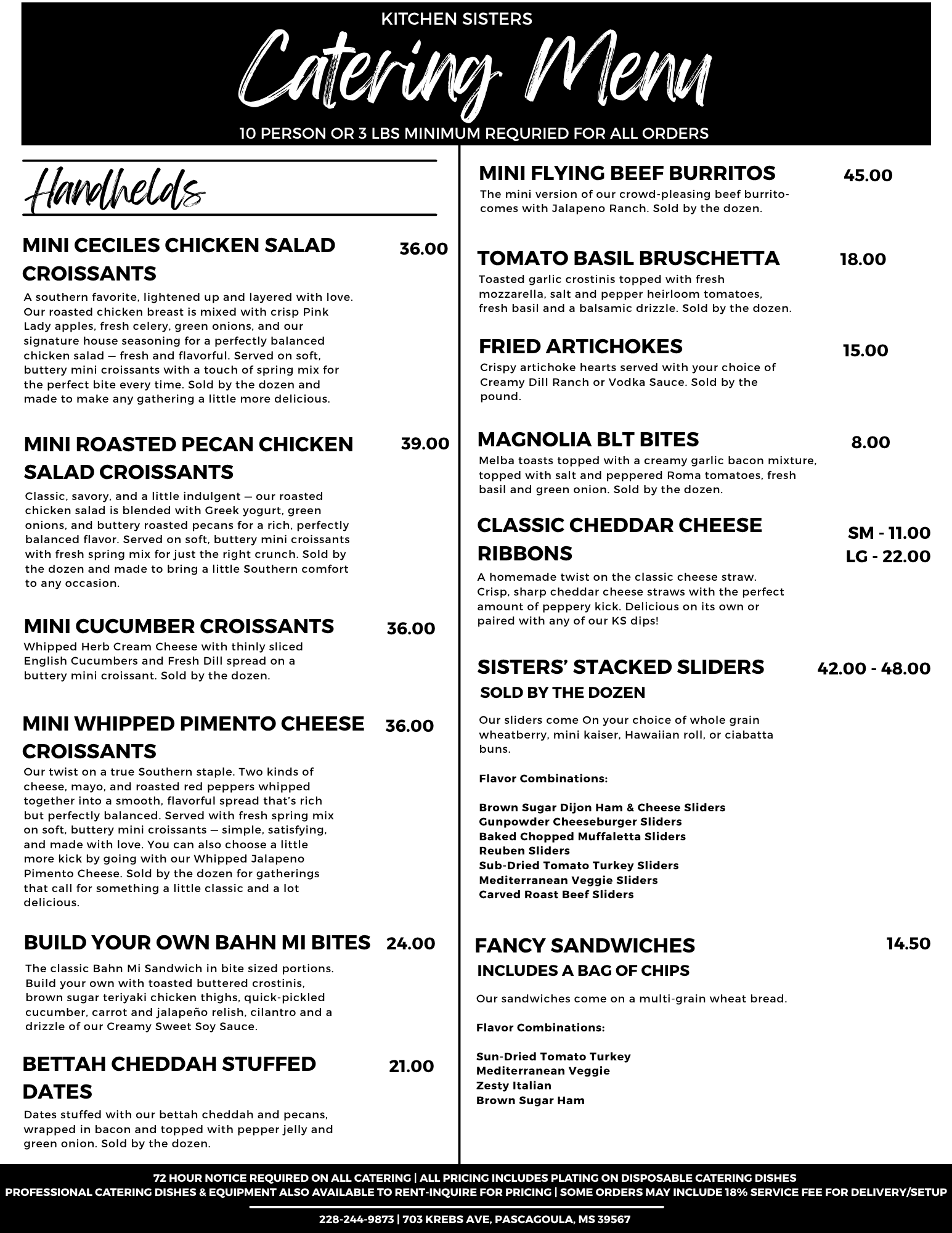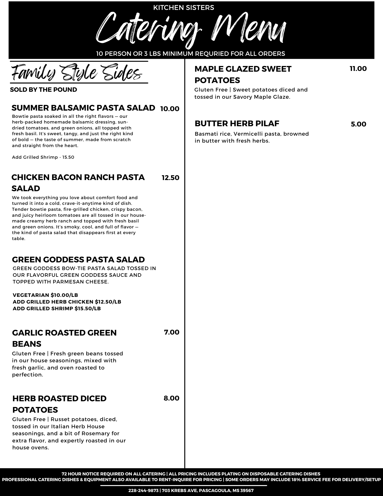 There Is A 10 Person or 3 Lbs Minimum On All Catering Orders.
