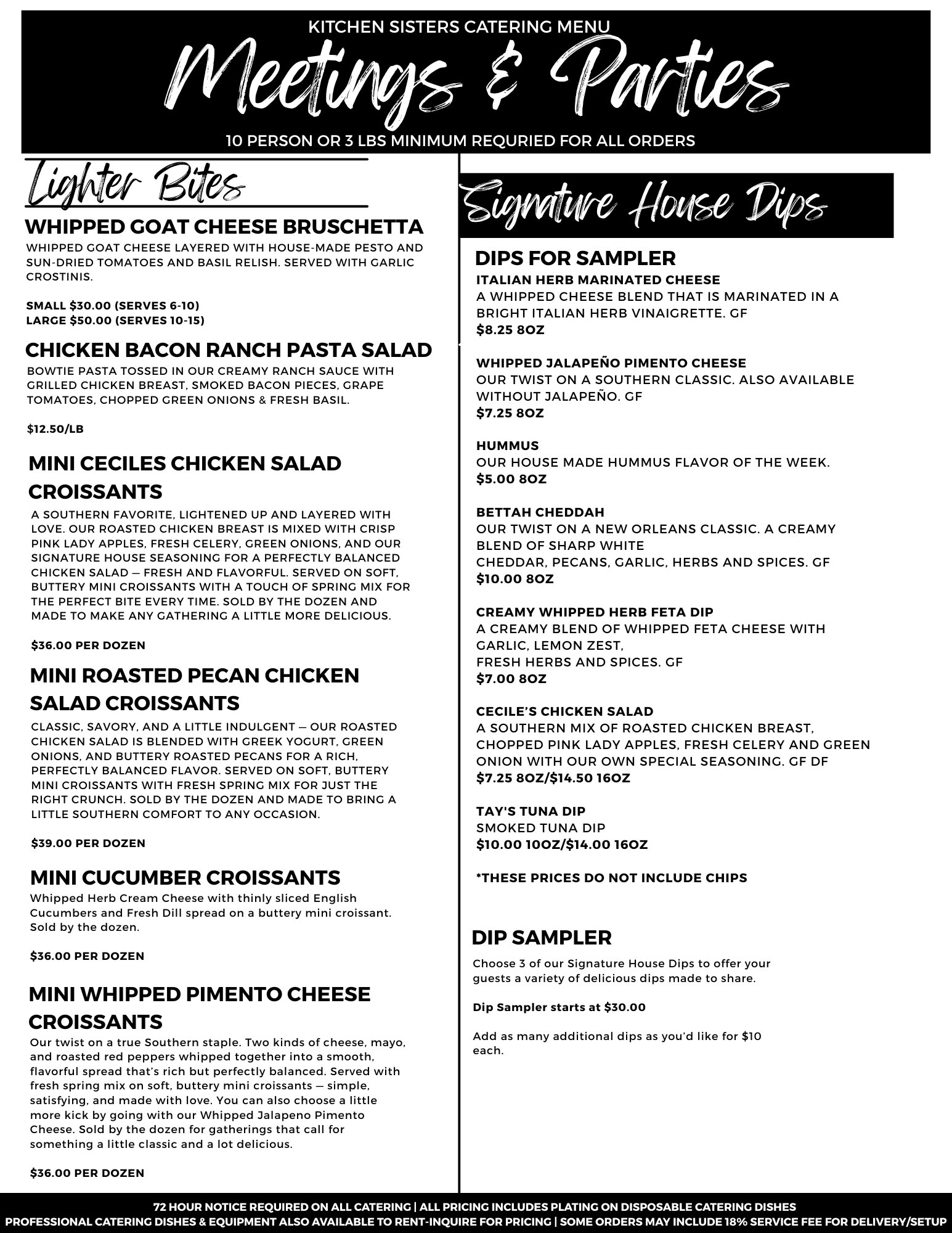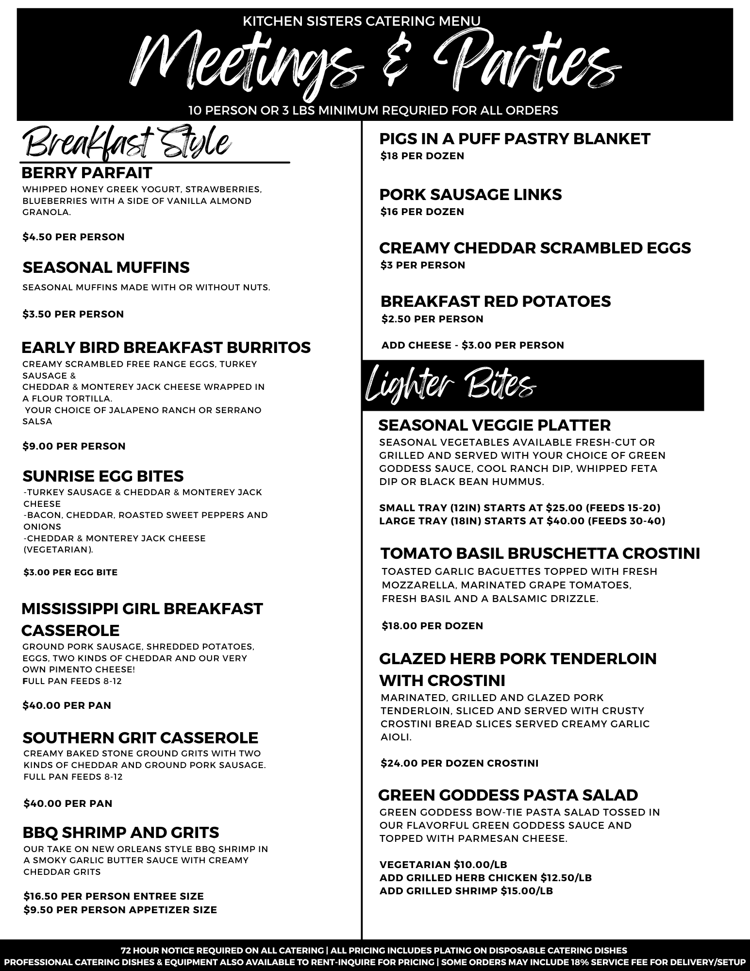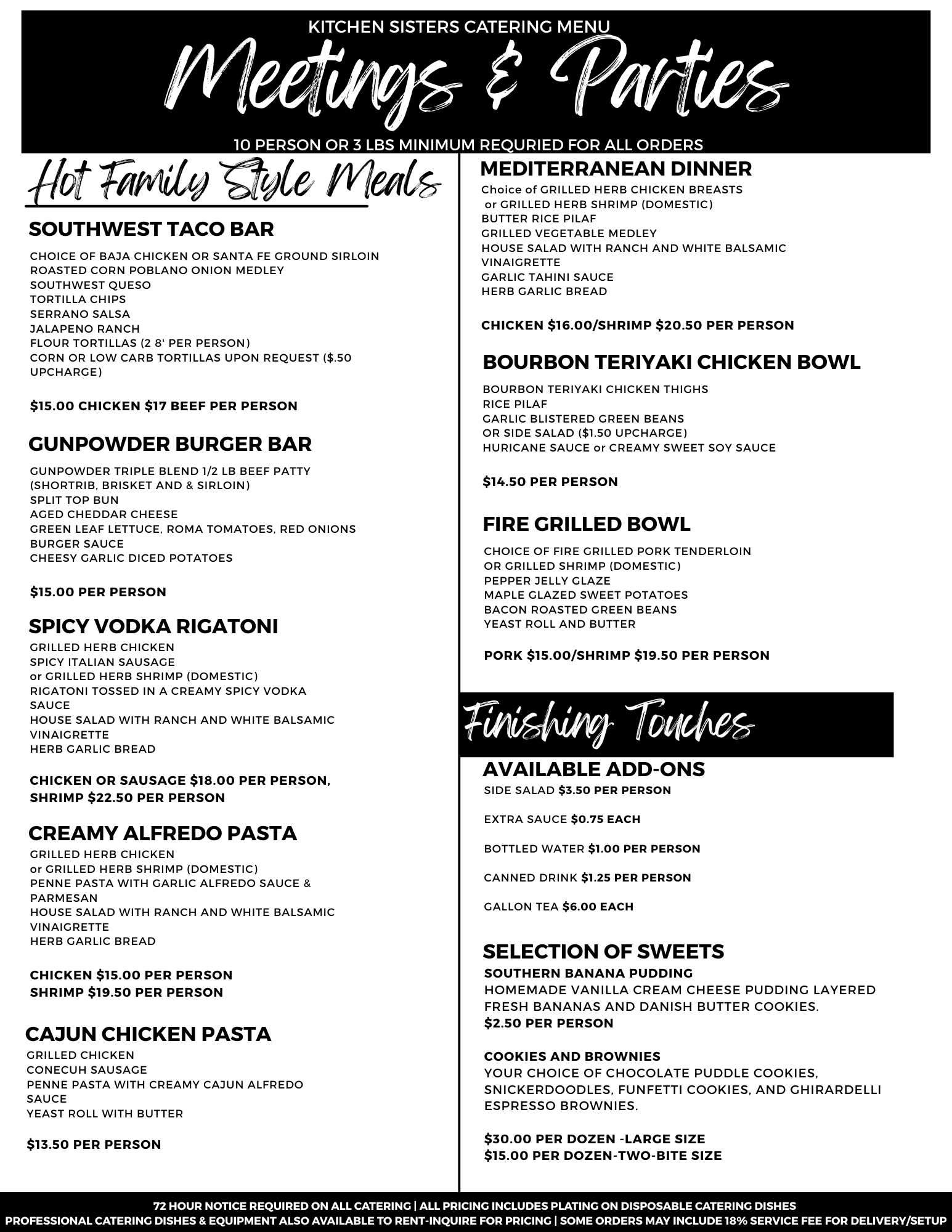 There Is A 10 Person or 3 Lbs Minimum On All Catering Orders.